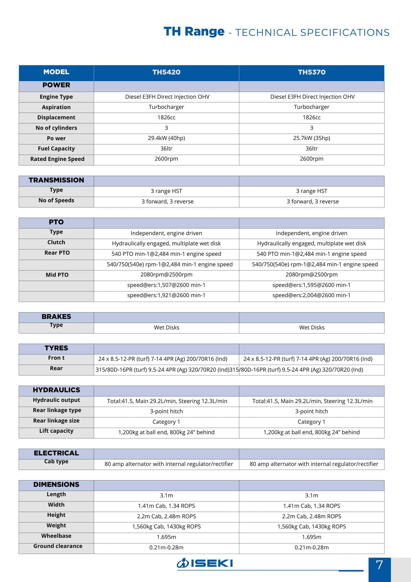 The TH5 range has ISEKI’s newly developed Stage V compliant engine, fitted with common-rail injection and exhaust after treatment.